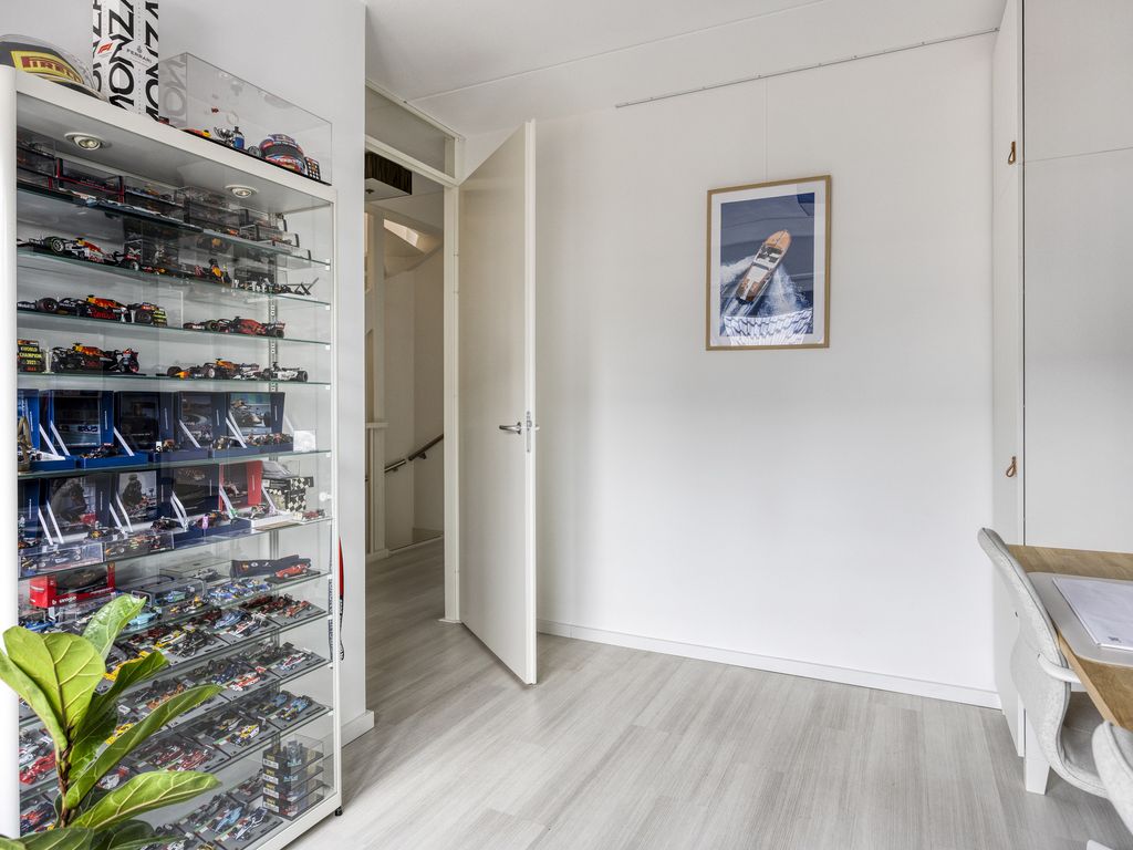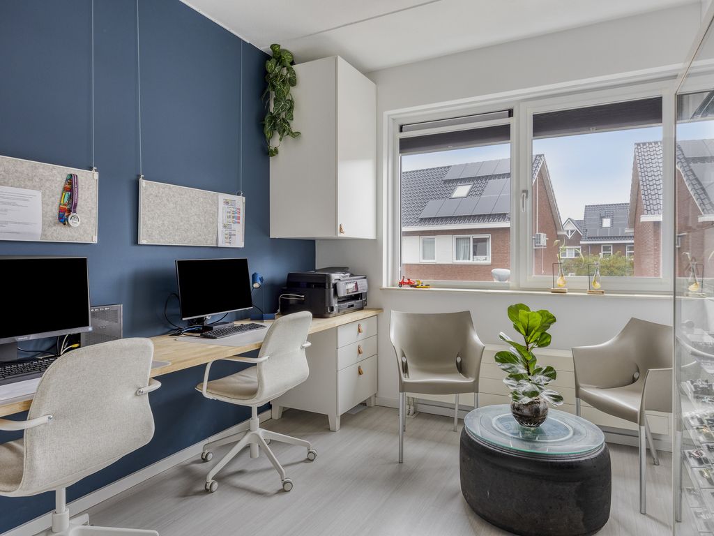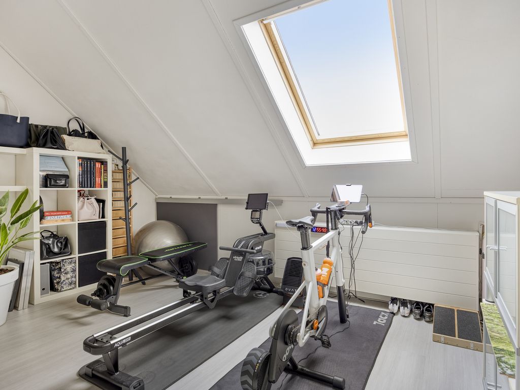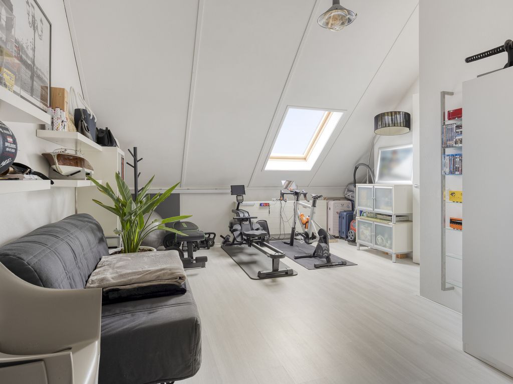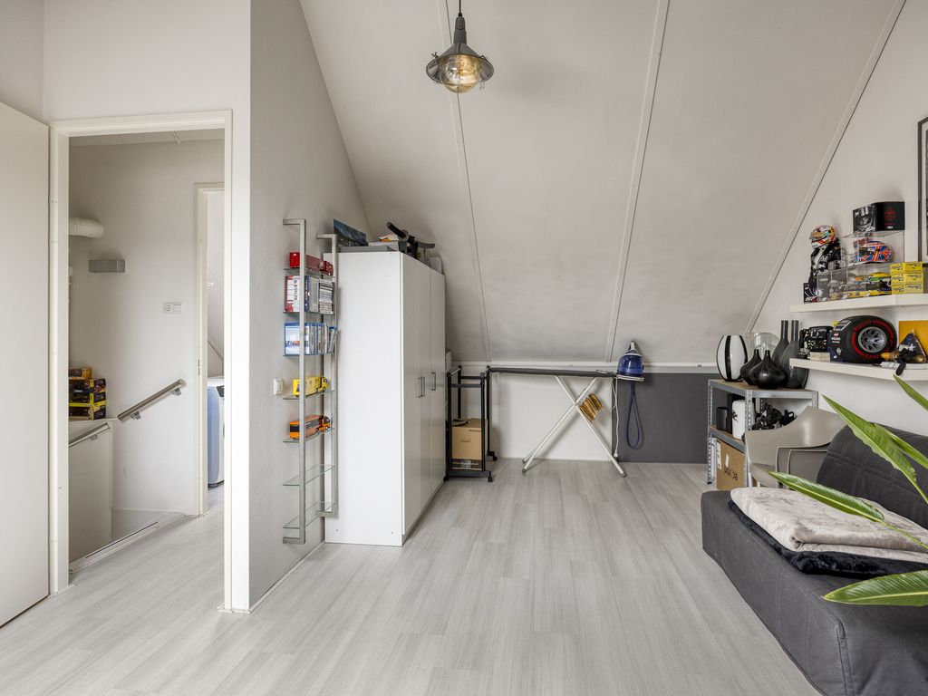 Deze royale kamer is voorzien van groot kantelraam. De vloer is v.v. laminaat. Achter de knieschotten is voldoende bergruimte.