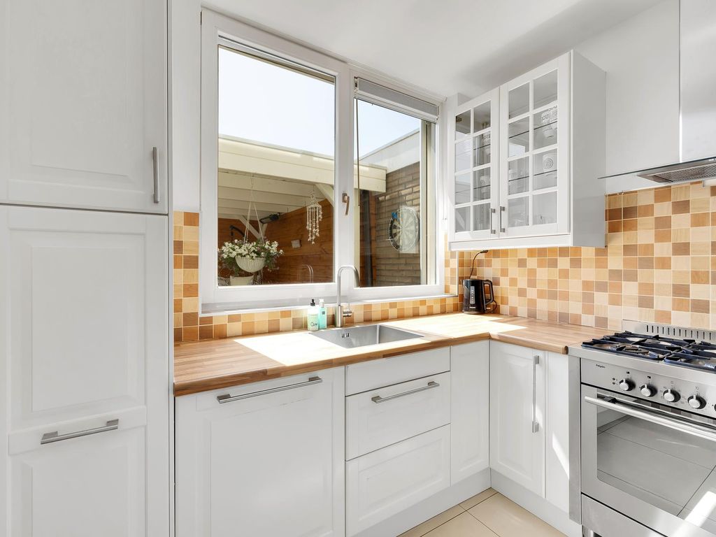De keurige keuken bevindt zich aan de achterzijde van de woning. De keuken in U opstelling beschikt over een koelkast, vriezer, 6-pits gasfornuis met oven, afzuigkap, spoelunit en vaatwasser.