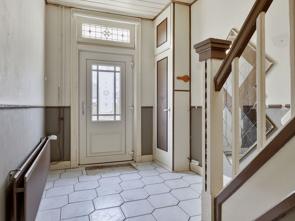Hal/ gang met trapopgang, meterkast en toegang tot de woonkamer en keuken.