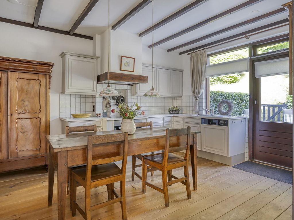 De woonkeuken aan de achterzijde beschikt over een hoekopstelling en is uitgerust met een kookplaat, afzuigkap, oven, vaatwasser en koelkast. Vanuit de keuken heeft u middels een enkele deur toegang tot de achtertuin.