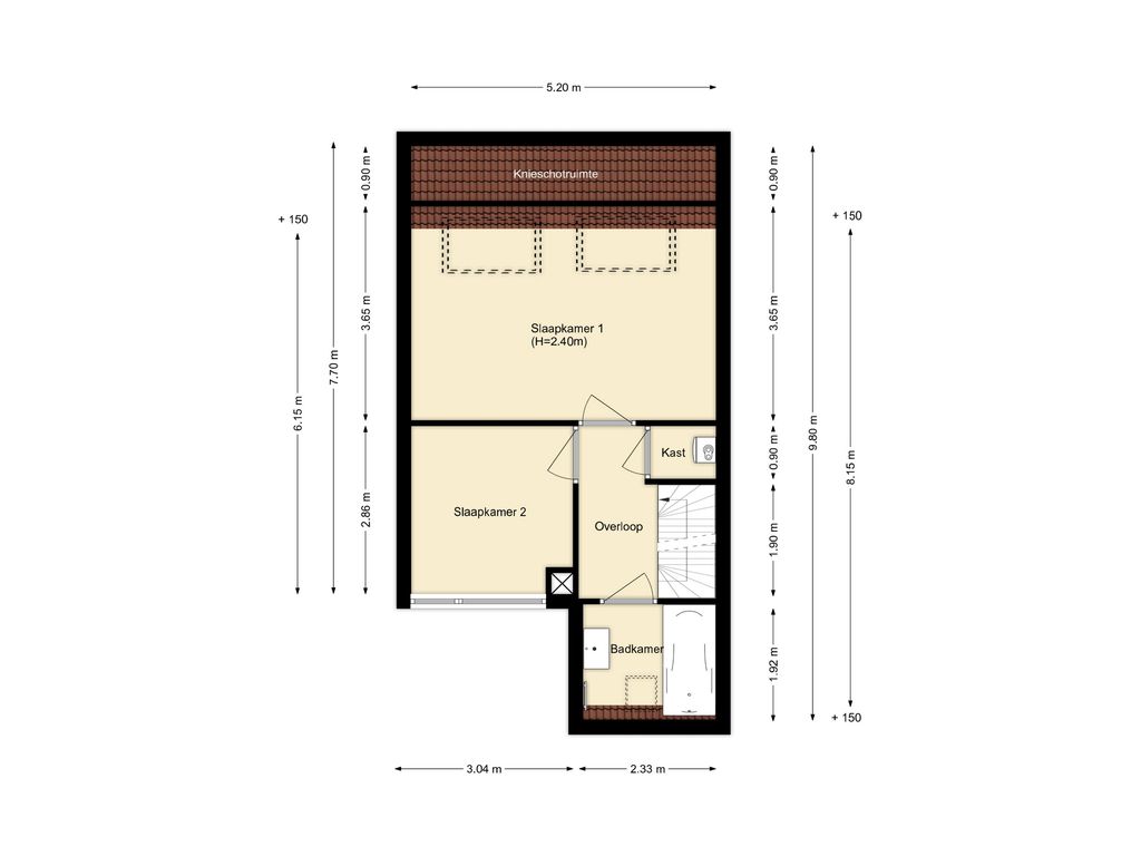 Voorzolder met dakraam.