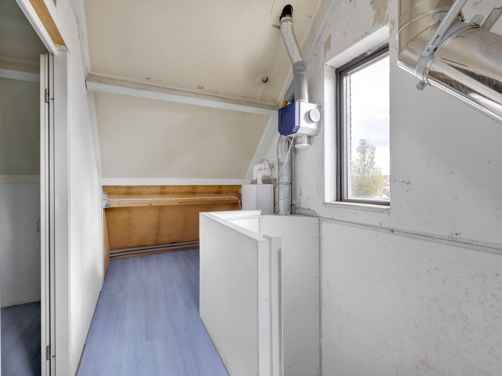 Ruime overloop met zijraam, dakraam, opstelplaats voor cv-ketel (Remeha 2020) en toegang tot de hobbyruimte/ slaapkamer III.