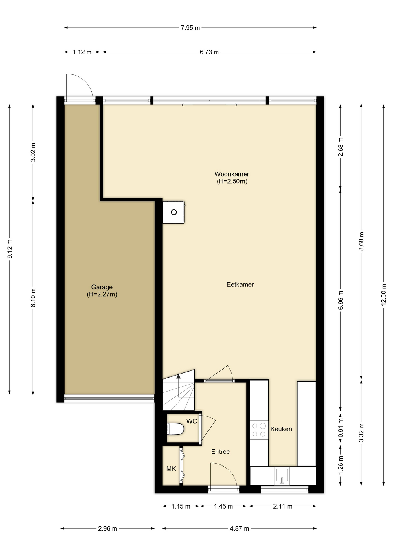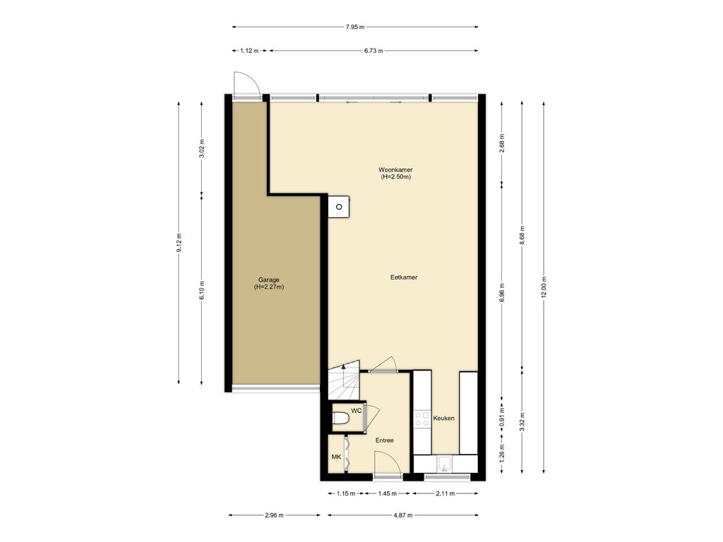 - garage met deur naar de achtertuin;