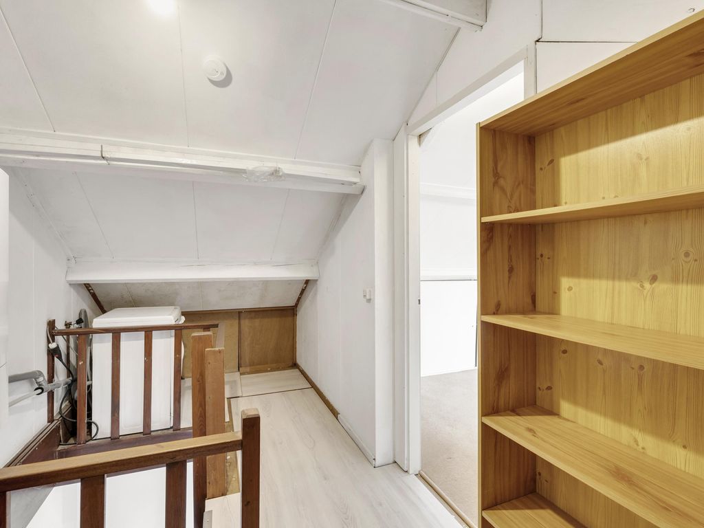 Ruime voorzolder met de opstelplaats voor de CV ketel (Bosch 2013) en de aansluiting voor de wasmachine. De vloer is afgewerkt met laminaat.