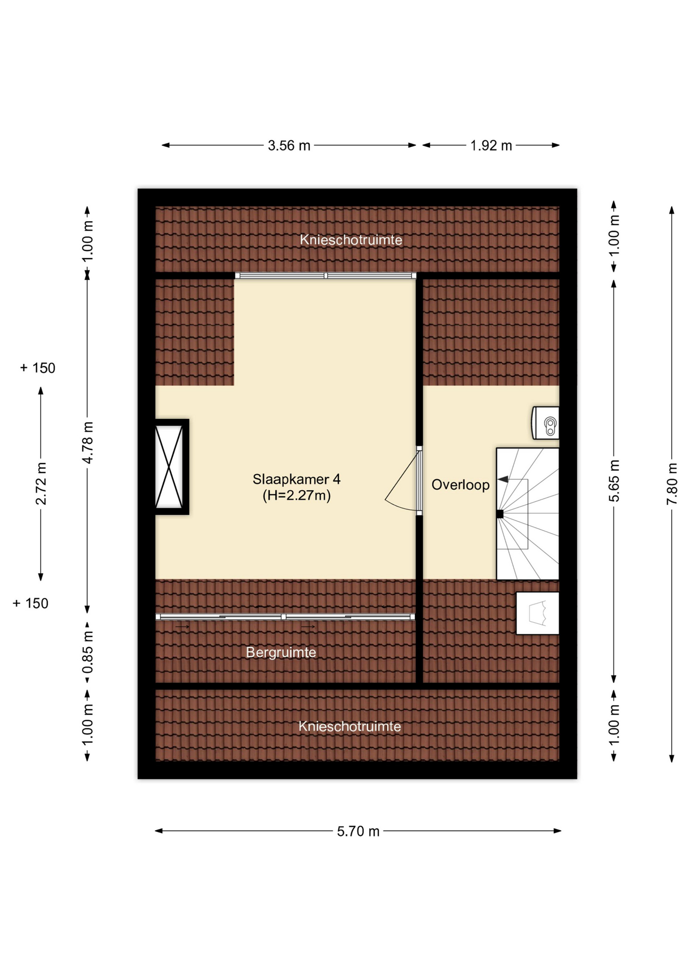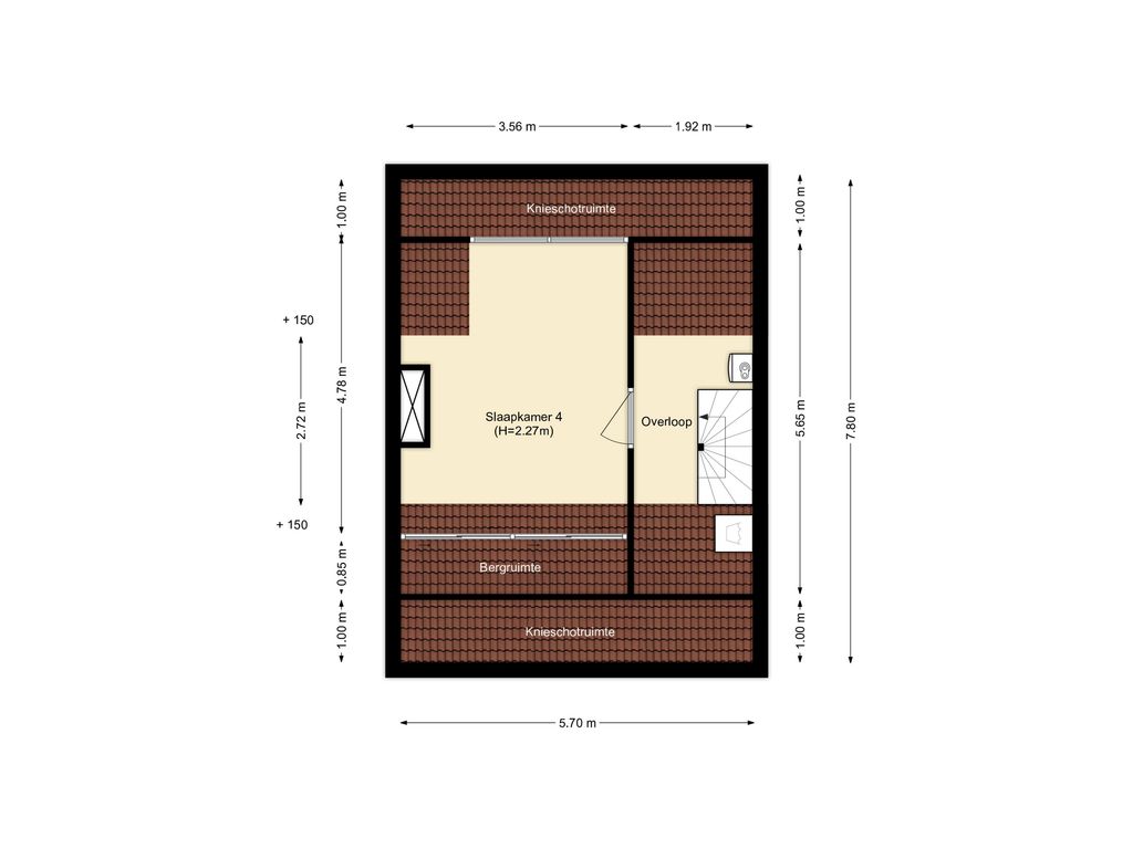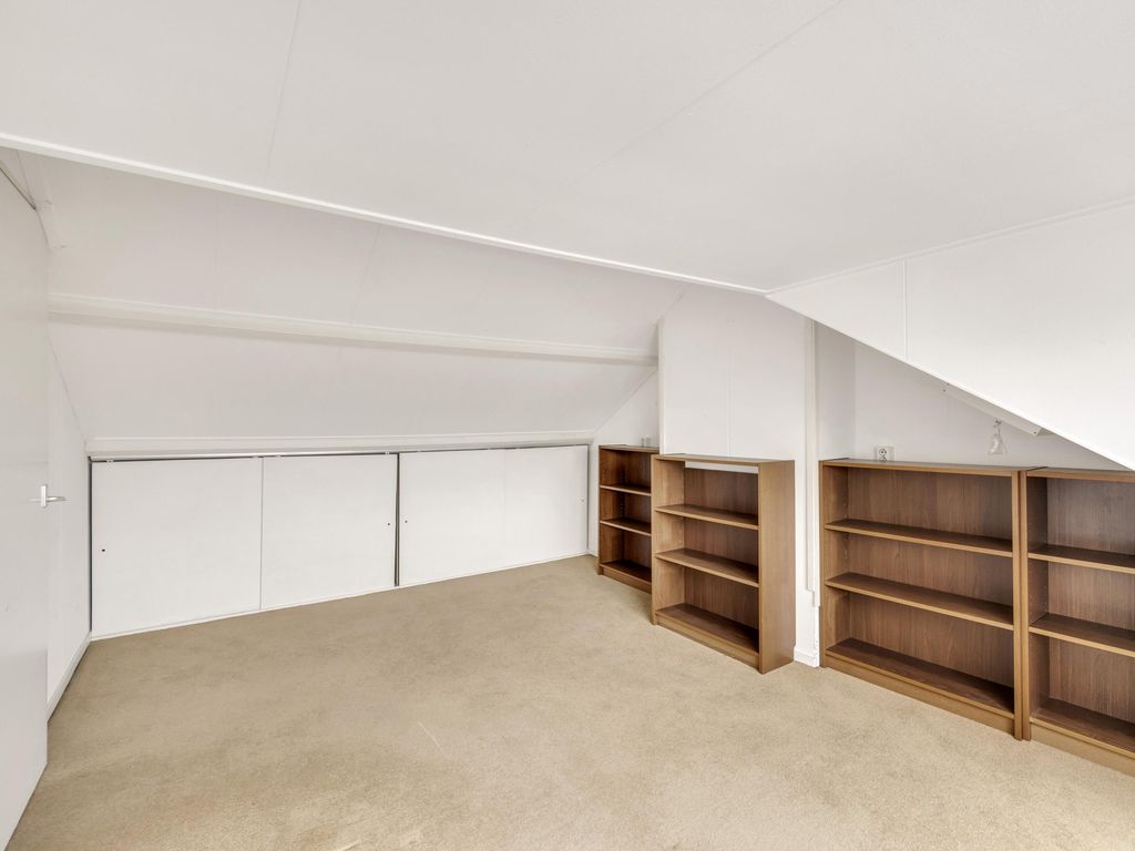 Deze slaapkamer is voorzien van een kunststof dakkapel, waardoor deze kamer extra licht en ruim is. De vloer is afgewerkt met tapijt. Tevens is er bergruimte achter de knieschotten.