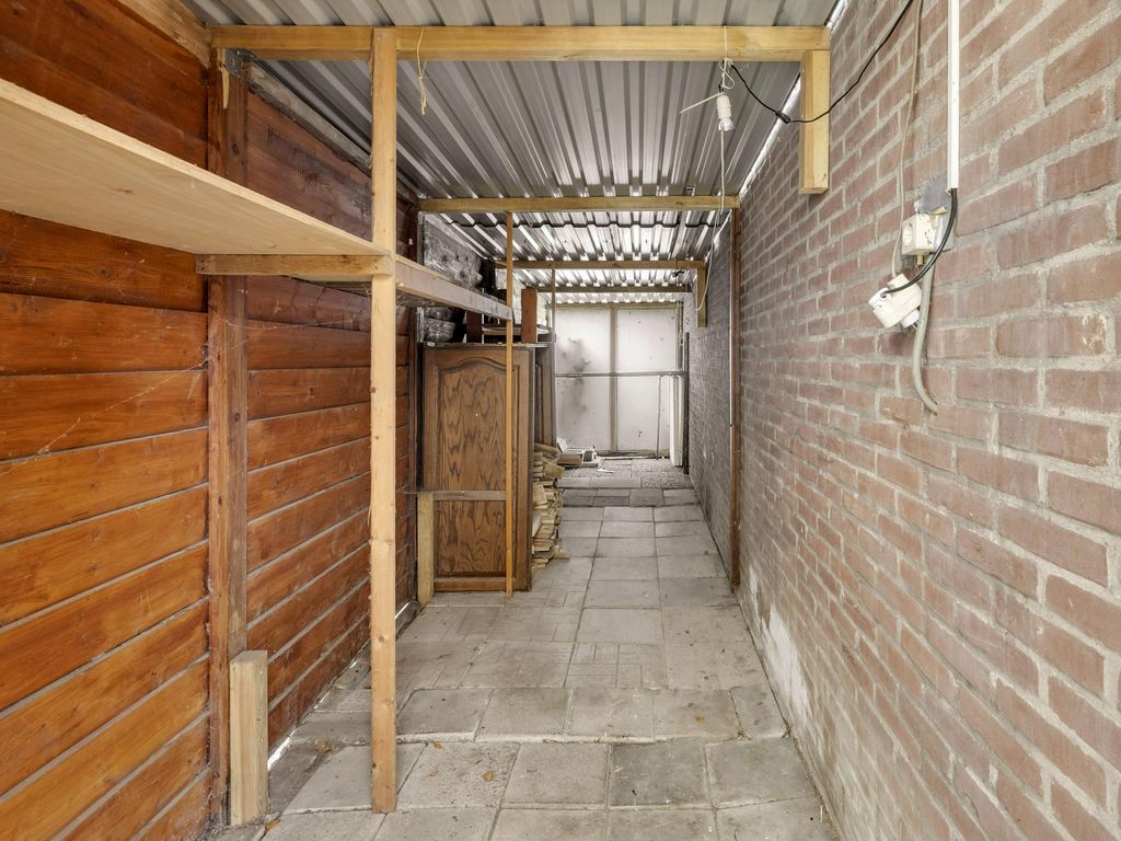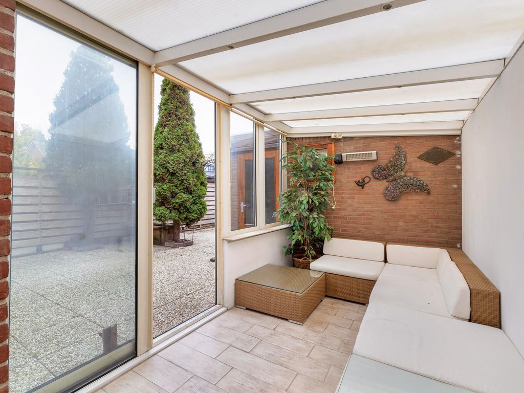 De fijne achtertuin is gelegen op het noordwesten en voorzien van sierbestrating. Aan de achtergevel is een zonnescherm geplaatst. Achter in de tuin vindt u de garage. Aan de garage is een gezellige tuinkamer geplaatst. U kunt deze ruimte voor diverse doeleinden gebruiken. Vanuit de tuinkamer is de berging te bereiken.