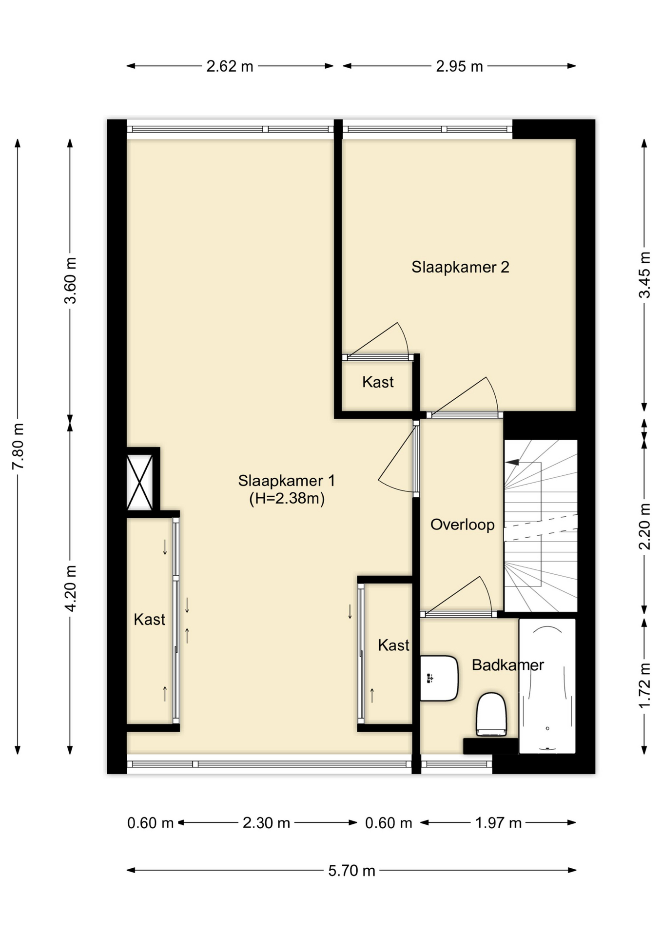 Deze informatie is door De Vreij Makelaardij met de nodige zorgvuldigheid samengesteld. De informatie is echter van algemene aard en niet meer dan een uitnodiging om in onderhandeling te treden. Onzerzijds en verkoper wordt echter geen enkele aansprakelijkheid aanvaard door enige onvolledigheid, onjuistheid of anderszins, dan wel de gevolgen daarvan. De meetinstructie is gebaseerd op de NEN2580. De meetinstructie is bedoeld om een meer eenduidige manier van meten toe te passen voor het geven van een indicatie van de gebruiksoppervlakte. De meetinstructie sluit verschillen in meetuitkomsten niet volledig uit, door bijvoorbeeld interpretatieverschillen, afrondingen of beperkingen bij het uitvoeren van de meting. Van toepassing zijn de Vastgoed Ned voorwaarden.